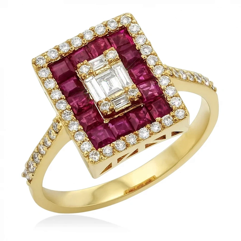 Кольцо из золота с бриллиантами и рубинами
