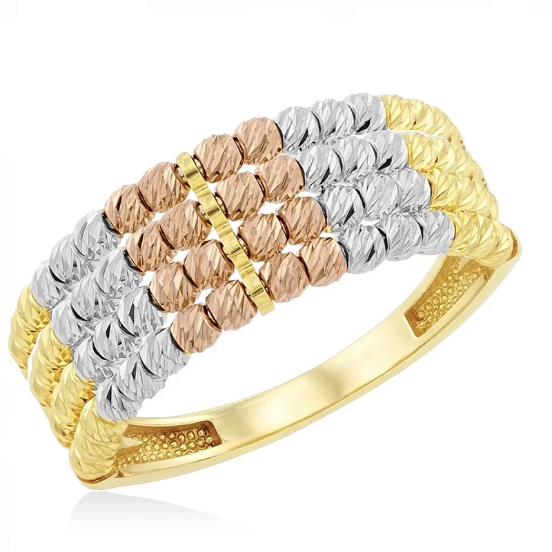 Кольцо с шариками из комбинированного золота