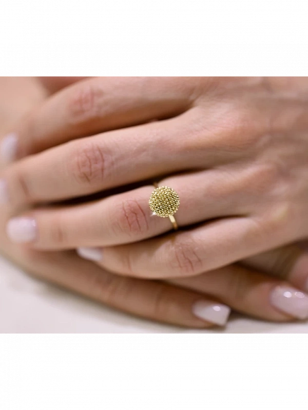 Кольцо шарик из желтого золота