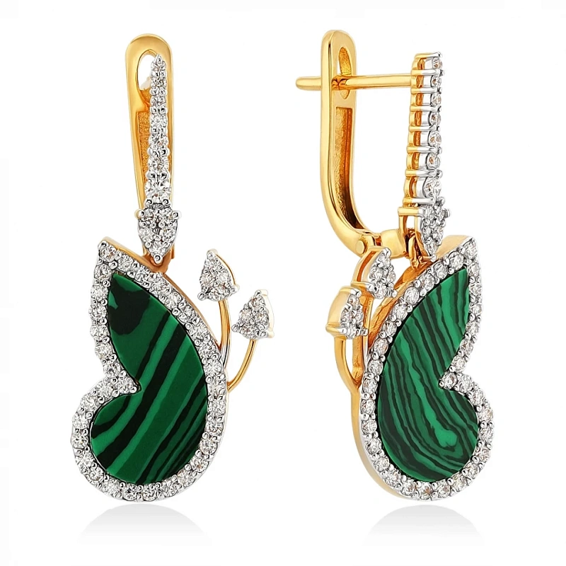 Серьги из золота с бриллиантами и малахитом