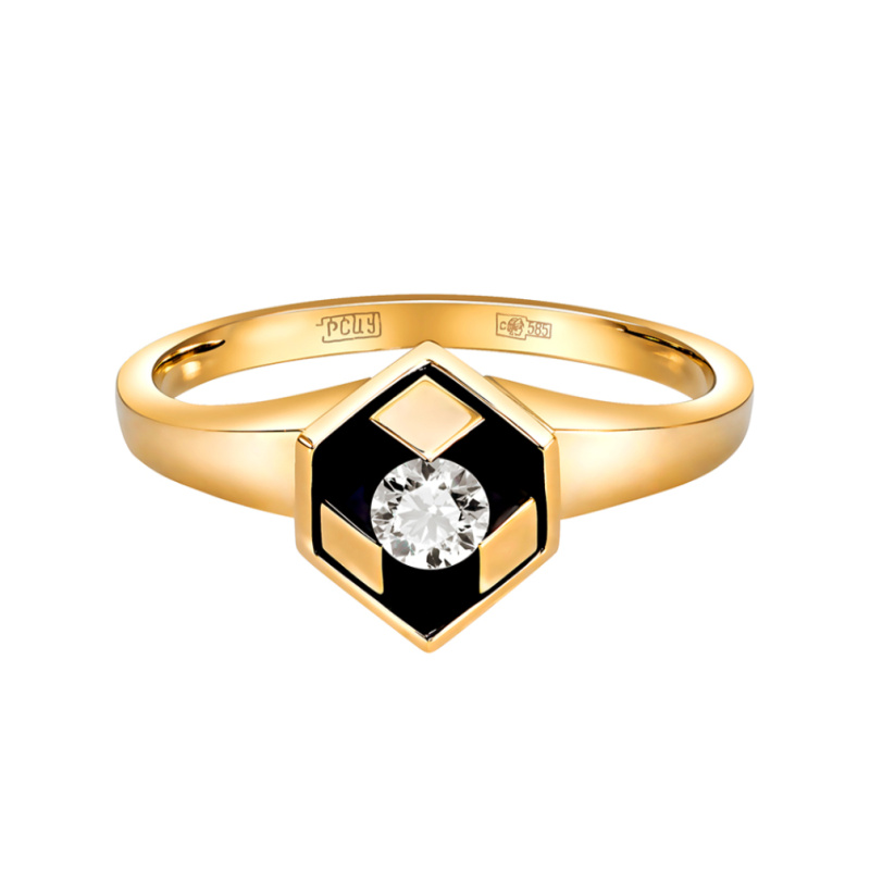 Кольцо из желтого золота с бриллиантом 0,175 ct