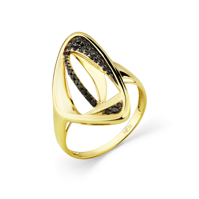 Кольцо из желтого золота с черными бриллиантами