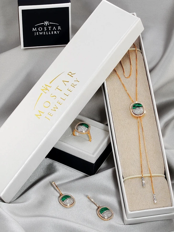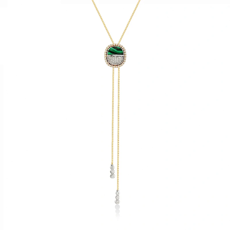 Золотое колье с бриллиантами и малахитом