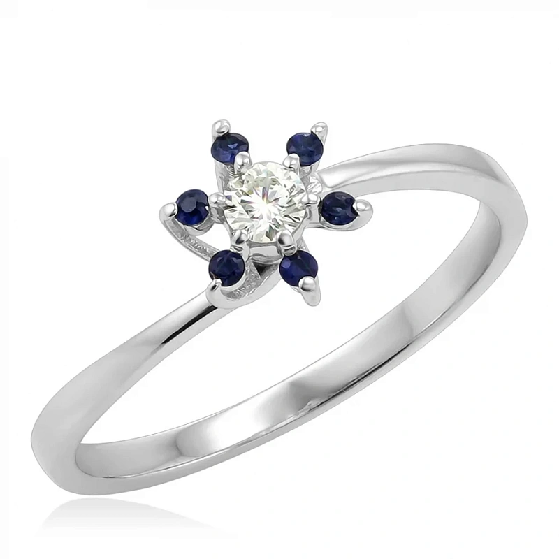 Кольцо из белого золота с бриллиантами и сапфирами
