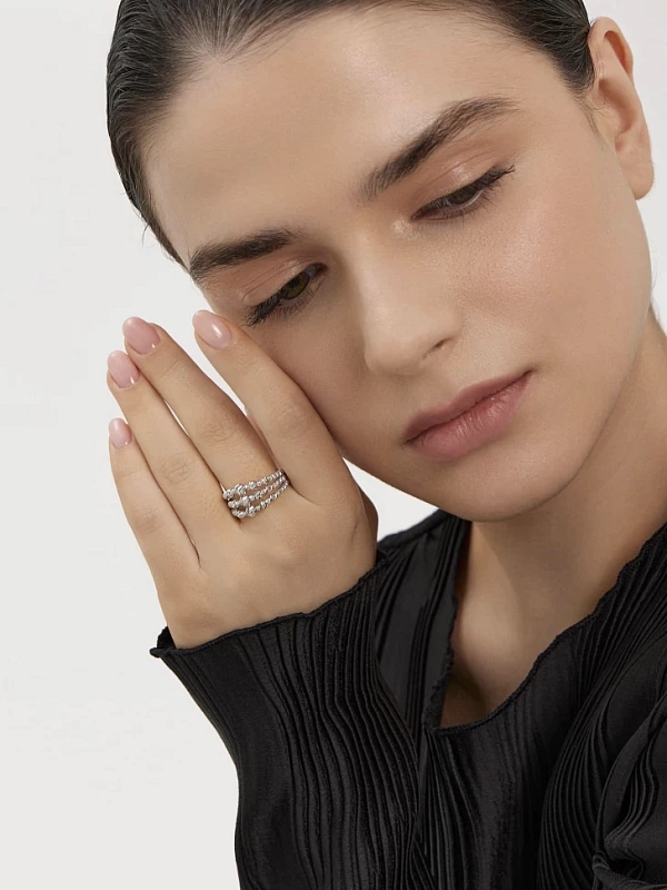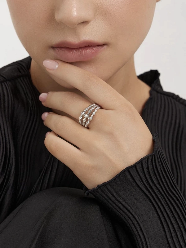 Кольцо из белого золота с шариками