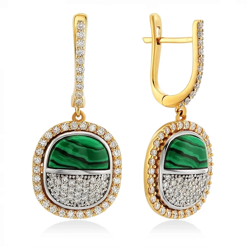 Серьги из золота с бриллиантами и малахитом