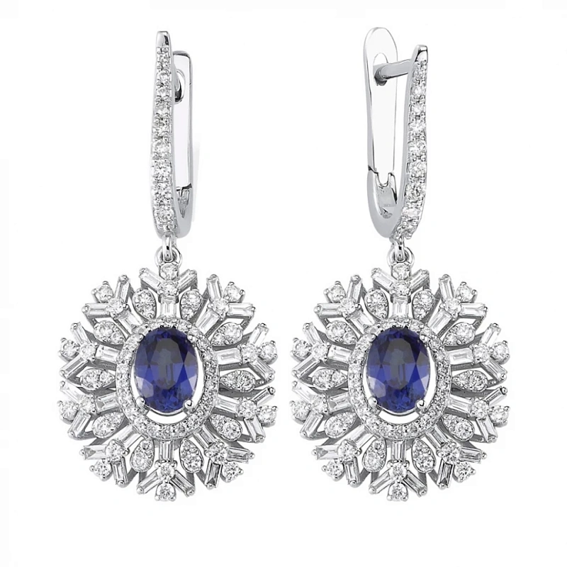 Золотые серьги с бриллиантами и сапфирами