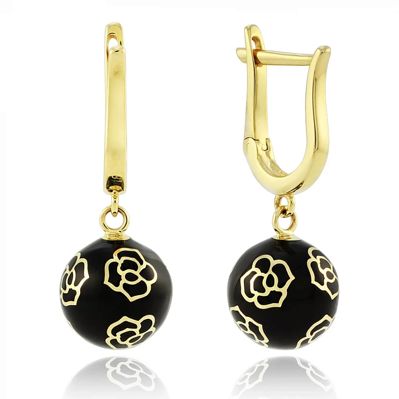 Золотые серьги с фианитами и эмалью