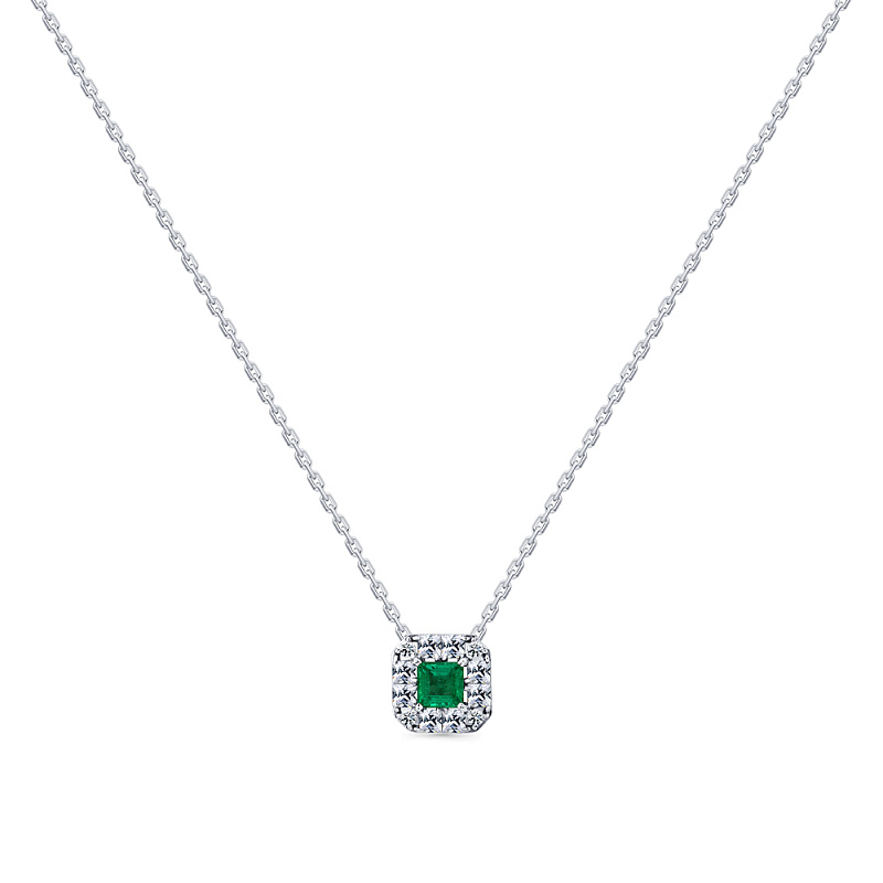 Колье из белого золота с изумрудом 0,31 ct