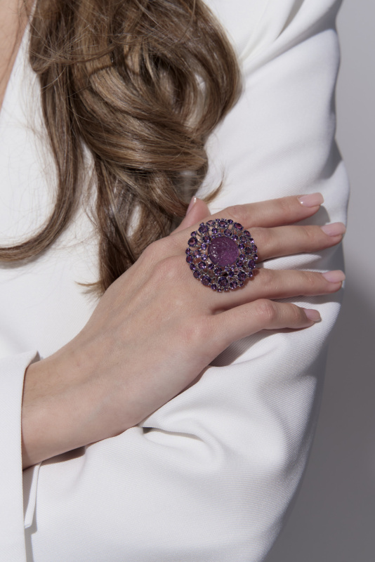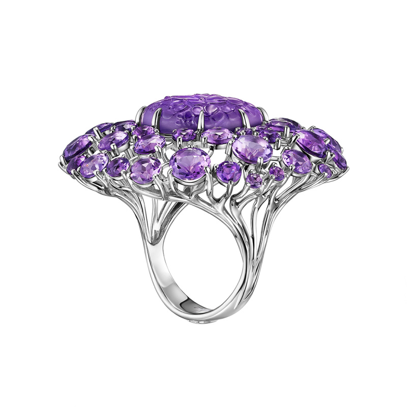 Кольцо из белого золота с аметистами 8,11 ct