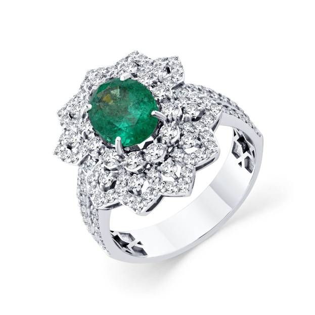 Кольцо из белого золота с изумрудом 1,225 ct