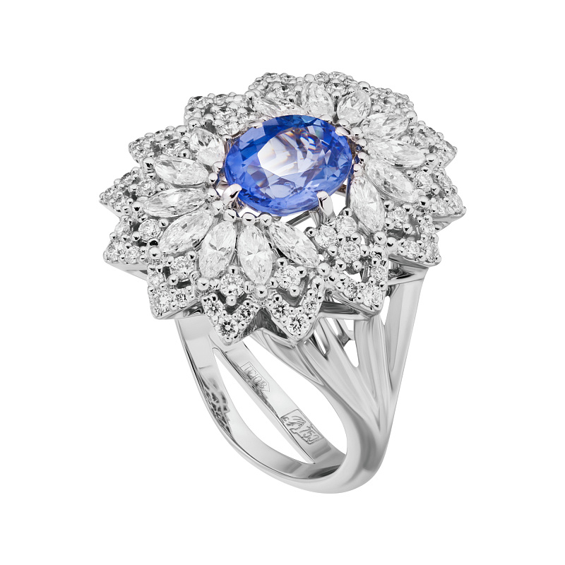 Кольцо из белого золота с сапфиром 3,72 ct
