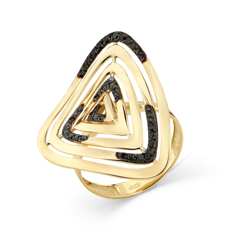 Кольцо из желтого золота с черными бриллиантами