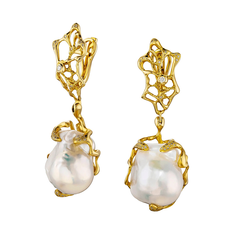 Серьги из желтого золота с жемчугом