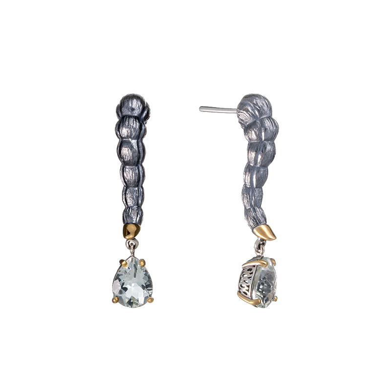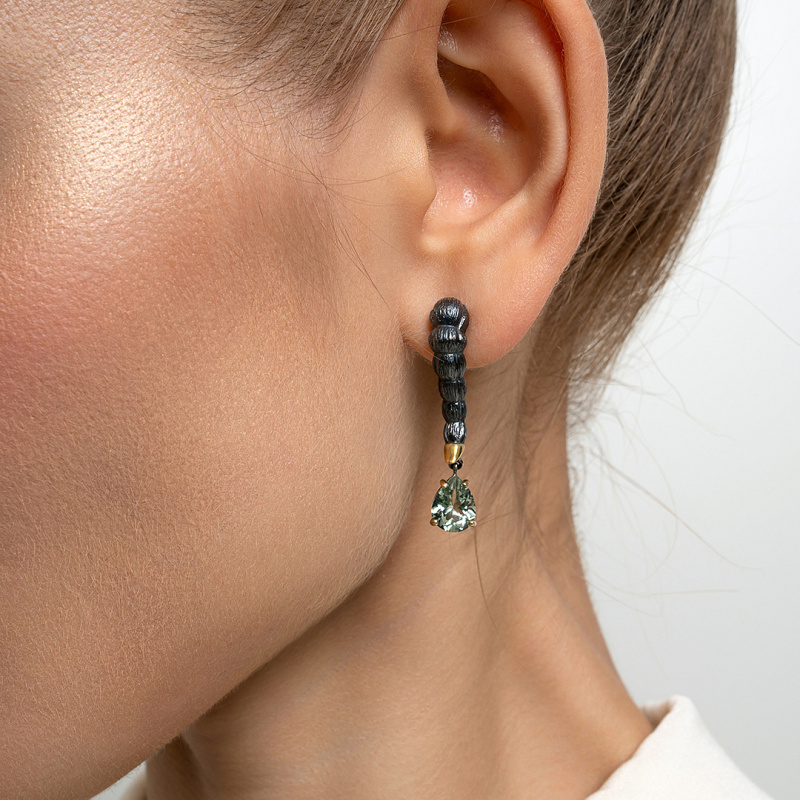 Серьги из серебра с празиолитом