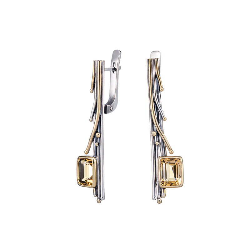 Серьги из серебра с цитрином