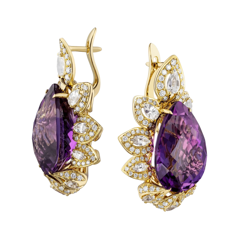 Серьги из желтого золота с аметистами 38,52 ct