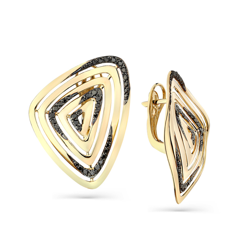 Серьги из желтого золота с черными бриллиантами
