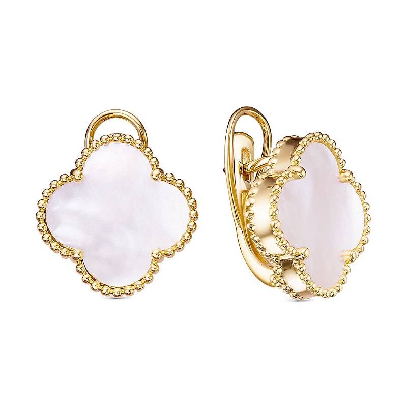Серьги из желтого золота с перламутром