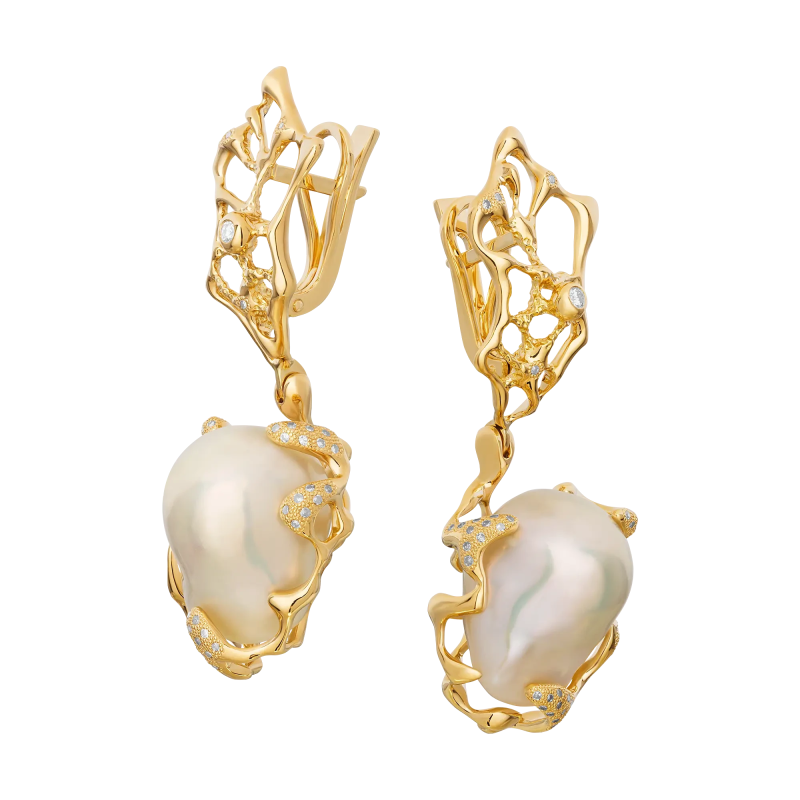 Серьги из желтого золота с жемчугом